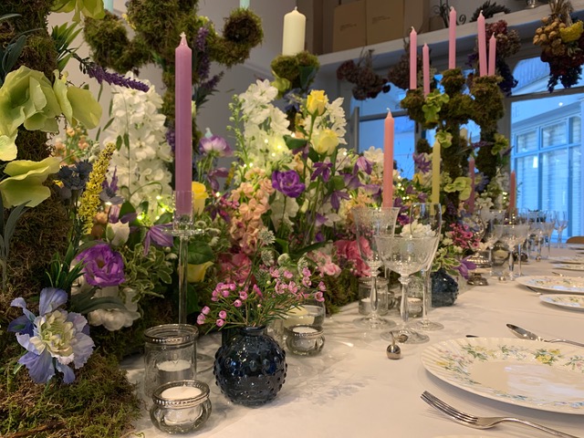 We teach all technical elements of the floristry profession as well as teaching courses that include table scapes and window/event concepts and designs. Above are a few various designs that we created together during my teaching.