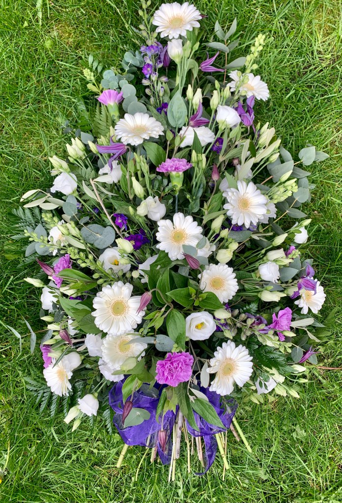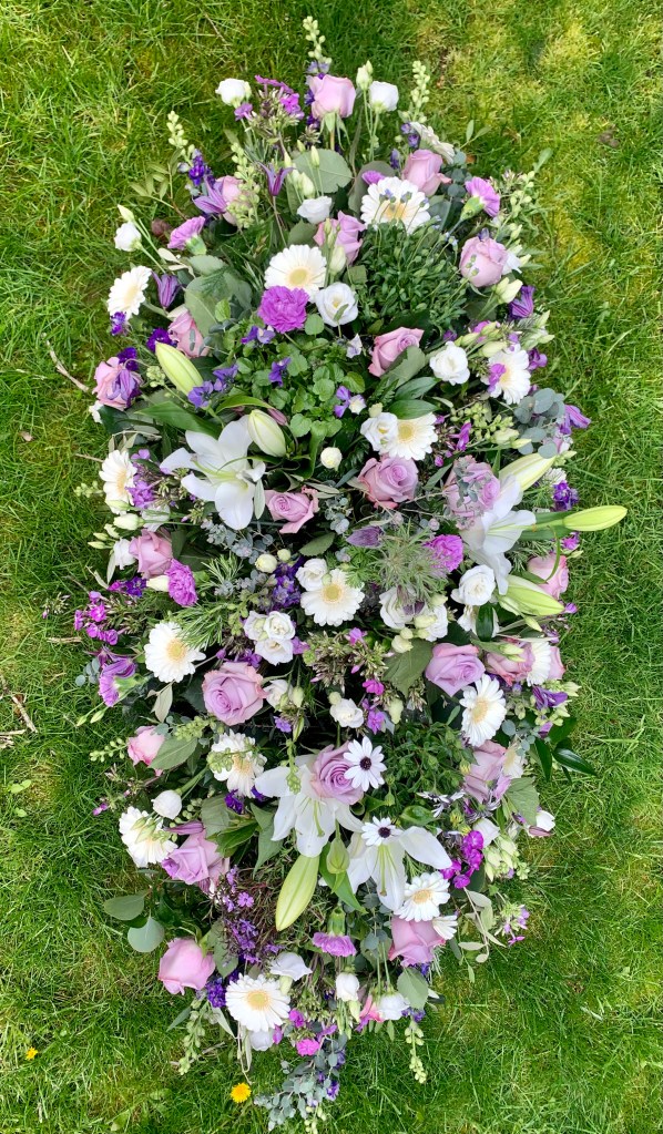 Floral funeral tributes always convey love and treasured memories. These personal designs were only made after discussing with the family what the favourite colours and preferred flower varieties the deceased particularly liked. We even added some living, potted, flowering plants into some of the larger designs so they could be taken out after the ceremony by close family members to plant them in their own gardens as a living keepsake.